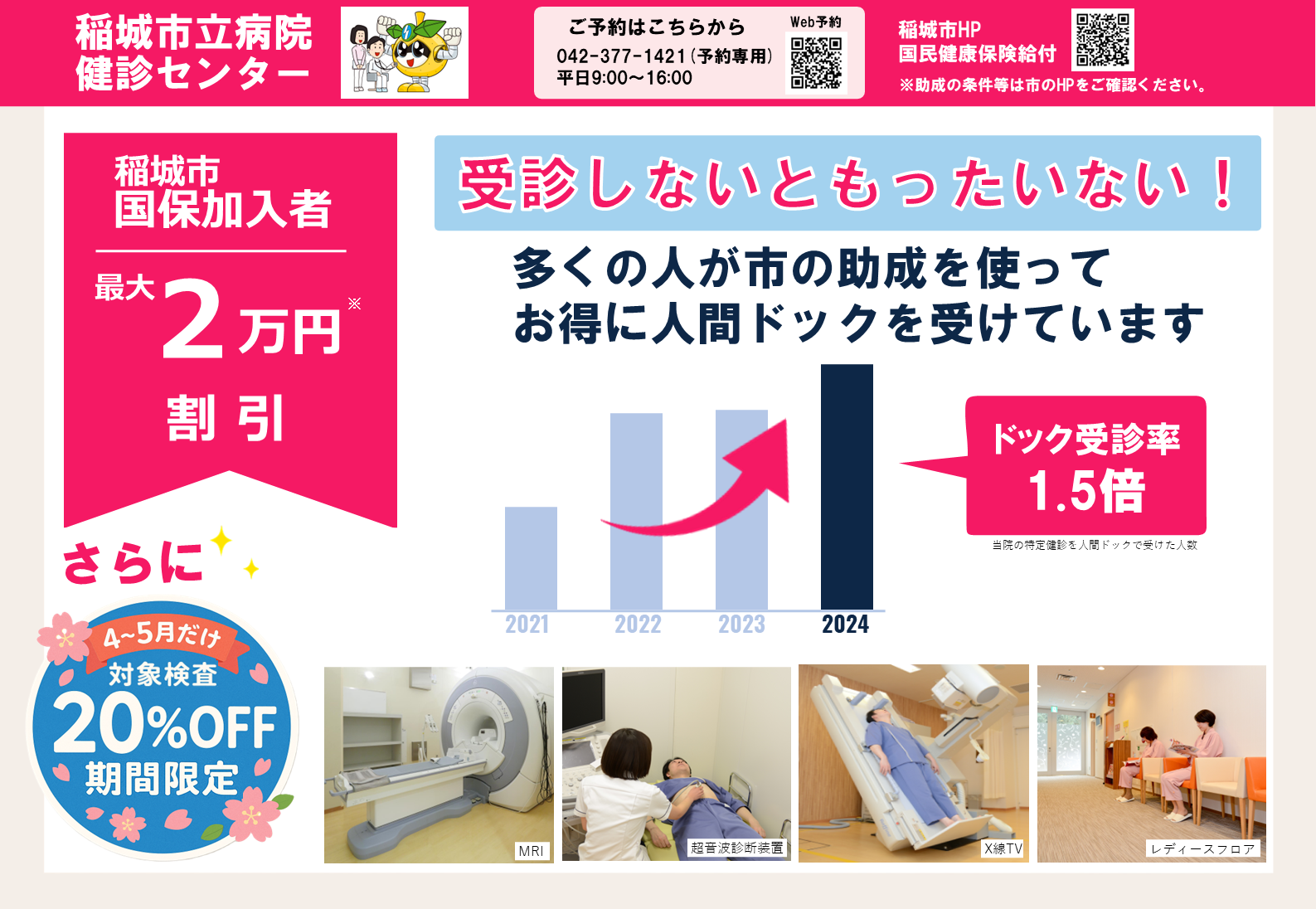 | 申込 | 受付時間:平日9時00分~16時00分 電話番号:042-377-1421(健診センター直通) |
